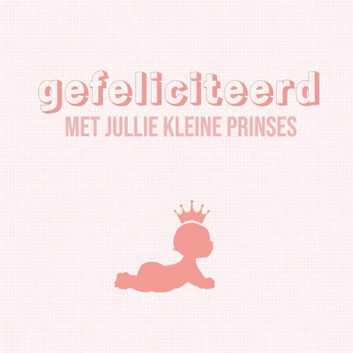 Op dit geboortekaartje voor een meisje staat: Gefeliciteerd met jullie kleine prinses.