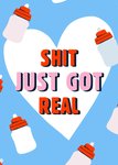 Leuke geboortekaart met illustratie en de tekst: Shit just got real.