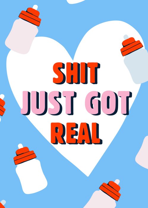 Leuke geboortekaart met illustratie en de tekst: Shit just got real.