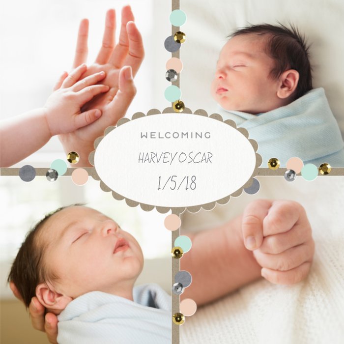 Wat leuk! Er is een nieuwe baby jongen geboren. Stuur deze leuke geboortekaart waar je foto's aan kunt toevoegen aan de gelukkige ouders.