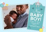Er is een lieve baby geboren! Feliciteer met dit leuke geboortekaartje van Greetz! Op de kaart kun je een foto zetten en er staat de tekst: New baby boy!