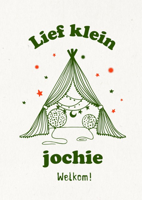 Lieve geboortekaart met illustratie en de tekst: Lief klein jochie, welkom!