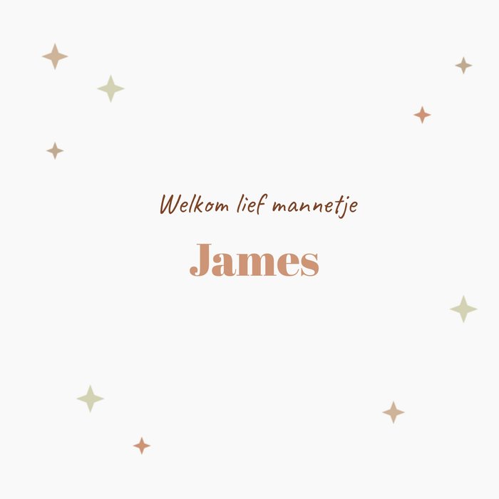Lieve geboortekaart met aanpasbare naam en de tekst: Welkom lief mannetje