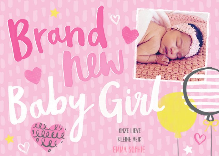 Lieve geboortekaart met foto en aanpasbare naam.