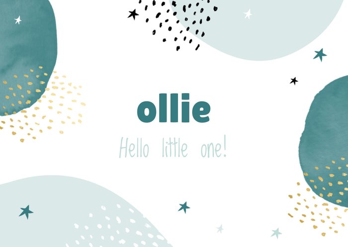 Hello little one! Voeg de naam van de pasgeboren baby toe en verras de kersverse ouders met de geboorte van hun zoon of dochter. Een sprankelend geboortekaartje om te feliciteren.Wenskaart van Greetz ontworpen door Greetz designers, volgens de laatste trends. Voeg je eigen foto('s), tekst, & versiering toe om de kaart extra persoonlijk te maken. Je kunt de kaart toevoegen aan je favorieten of tussentijds opslaan om deze later af te maken. Toch liever een ander design? Bekijk alle geboorte kaarten.