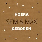 Een leuke kaart voor de geboorte van een tweeling ontworpen door Greetz designers met de tekst 'Hoera .... geboren'