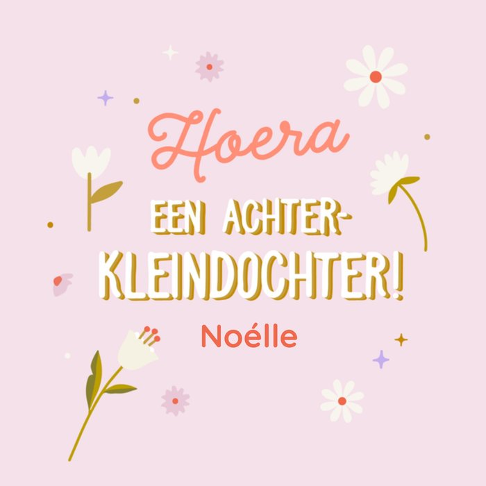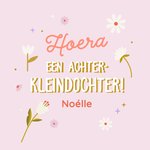 Leuke geboortekaart met aanpasbare naam voor de geboorte van een achterkleindochter.