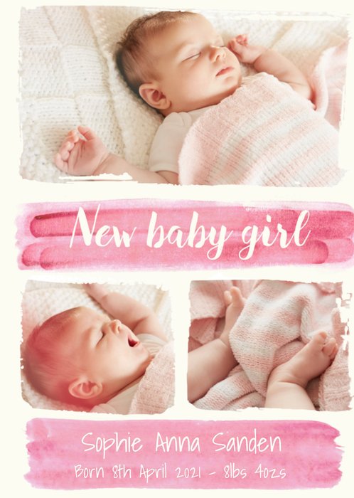 Lief geboortekaartje met foto en de tekst: New baby girl. Wenskaart van Greetz ontworpen door Greetz designers, volgens de laatste trends. Voeg je eigen foto('s), tekst, & versiering toe om de kaart extra persoonlijk te maken. Je kunt de kaart toevoegen aan je favorieten of tussentijds opslaan om deze later af te maken. Meer geboortekaarten zien? Check ze hier.
