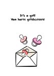 Leuke geboortekaart met illustratie en de tekst: It's a girl! Van harte gefeliciteerd