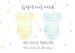 Verras de kersverse ouders met deze lieve geboortekaart met aanpasbare naam en de tekst: Gefeliciteerd met jullie tweeling [namen]
