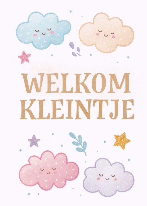 Verras met dit schattige geboortekaart met de tekst "Welkom kleintje." De kaart is niet aanpasbaar.