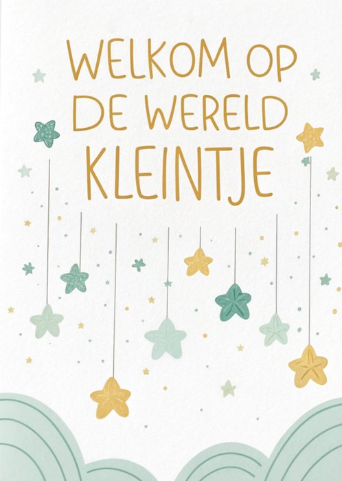 Verras met dit schattige geboortekaart met de tekst "Welkom op de wereld kleintje." De kaart is niet aanpasbaar.
