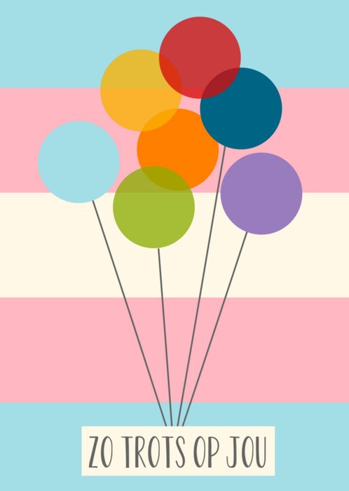 Feliciteer met deze leuke kaart met ballonnen en de tekst: Zo trots op jou.