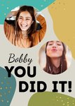 Iemand die geslaagd of afgestudeerd is? Stuur haar dan deze abstracte en kleurrijke kaart van Greetz. Op de kaart staat: You did it! Ook kun je een naam toevoegen en twee foto's.