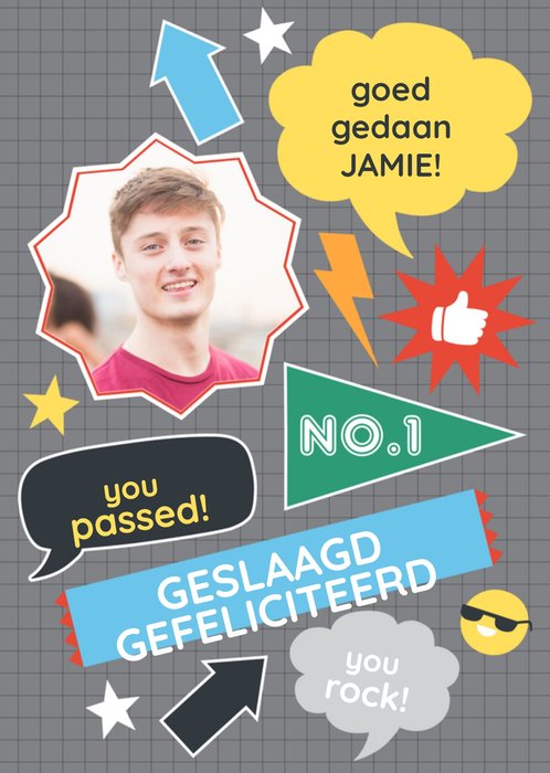 Wenskaart van Greetz ontworpen door Greetz designers, volgens de laatste trends. Voeg je eigen foto('s), tekst, & versiering toe om de kaart extra persoonlijk te maken. Je kunt de kaart toevoegen aan je favorieten of tussentijds opslaan om deze later af te maken. Meer geslaagdkaarten zien? Check ze hier.