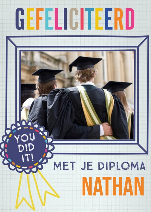 Wenskaart van Greetz ontworpen door Greetz designers, volgens de laatste trends. Voeg je eigen foto('s), tekst, & versiering toe om de kaart extra persoonlijk te maken. Je kunt de kaart toevoegen aan je favorieten of tussentijds opslaan om deze later af te maken. Meer geslaagdkaarten zien? Check ze hier.