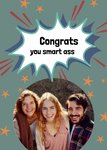 Ken je iemand die geslaagd of afgestudeerd is? Stuur hem dan deze leuke kaart van Greetz. Op de kaart staat: Congrats you smart ass. Ook kun je een foto's toevoegen.