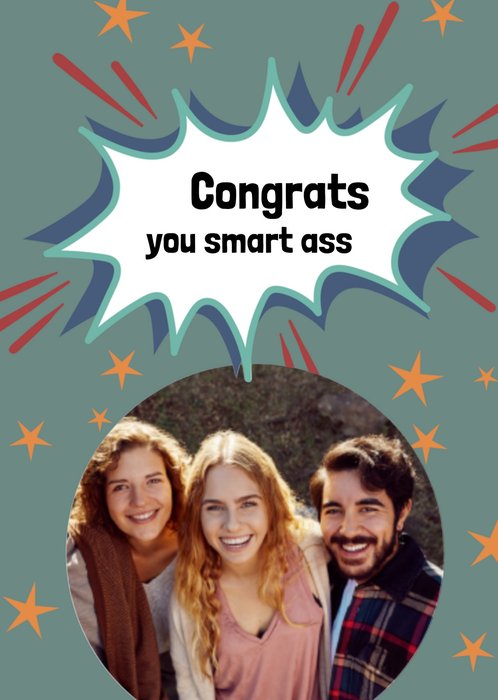 Ken je iemand die geslaagd of afgestudeerd is? Stuur hem dan deze leuke kaart van Greetz. Op de kaart staat: Congrats you smart ass. Ook kun je een foto's toevoegen.