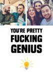 Wat leuk dat je maatje geslaagd is of afgestudeerd! Stuur hem daarom een leuke en coole kaart van Greetz! Op deze kaart staat: you're pretty fucking genius. Ook kun je twee foto's toevoegen.