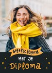 Op deze leuke geslaagdkaart staat: Gefeliciteerd met je diploma. Je kunt ook een foto toevoegen.
