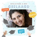 L:euke geslaagd met foto en de tekst: Gefeliciteerd je bent geslaagd