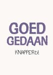 Op deze geslaagdkaart staat: Goed gedaan knapperd!