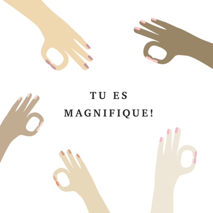 Op deze geslaagdkaart zie je een paar handen en de tekst: Tu es magnifique!