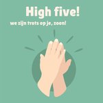 Wat zullen jullie trots zijn! Jullie zoon is geslaagd! Stuur hem daarom een leuke kaart met illustraties van Greetz! Op deze kaart staat: High five! We zijn trots op je, zoon!