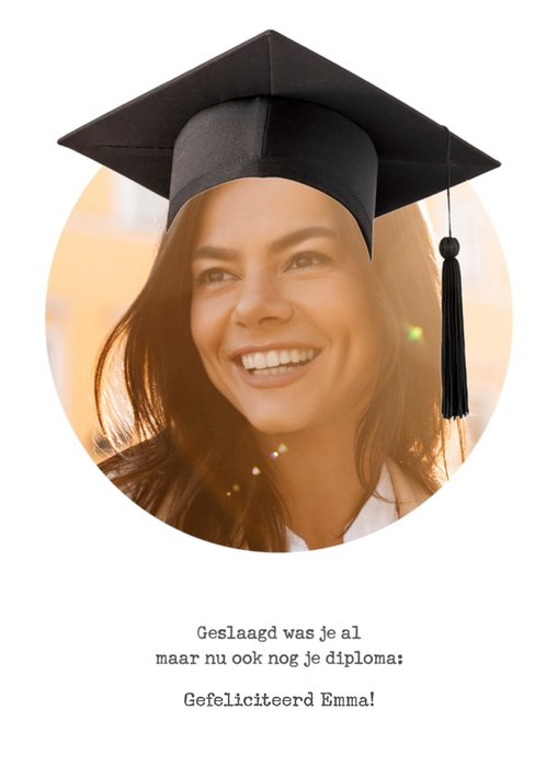 Leuke geslaagdkaart met aanpasbare naam en foto.