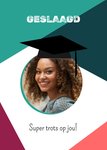 Wenskaart van Greetz ontworpen door Greetz designers, volgens de laatste trends. Voeg je eigen foto('s), tekst, & versiering toe om de kaart extra persoonlijk te maken. Je kunt de kaart toevoegen aan je favorieten of tussentijds opslaan om deze later af te maken. Meer geslaagdkaarten zien? Check ze hier.
