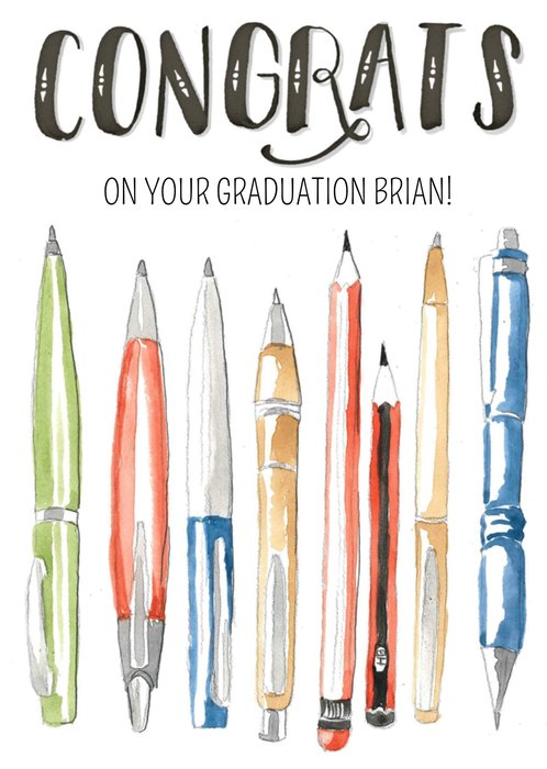 Leuke geslaagdkaart met illustratie en aanpasbare naam.