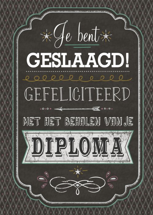 Wenskaart van Greetz ontworpen door Greetz designers, volgens de laatste trends. Voeg je eigen foto('s), tekst, & versiering toe om de kaart extra persoonlijk te maken. Je kunt de kaart toevoegen aan je favorieten of tussentijds opslaan om deze later af te maken. Meer geslaagdkaarten zien? Check ze hier.