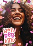 Kleurrijke geslaagdkaart met confetti en foto, en de tekst: 'Wonderkind.' Verras iemand met deze vrolijke geslaagdkaart van Greetz.