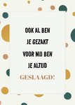 Ah! Wat vervelend je kent iemand die gezakt is. Stuur daarom deze opbeurende kaart met tekst: Ook al ben je gezakt voor mij ben je altijd geslaagd!