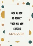 Ah! Wat vervelend je kent iemand die gezakt is. Stuur daarom deze opbeurende kaart met tekst: Ook al ben je gezakt voor mij ben je altijd geslaagd!