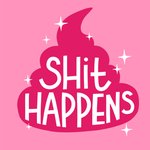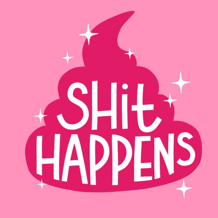Humoristische gezakt kaart met illustratie en de tekst: Shit happens.