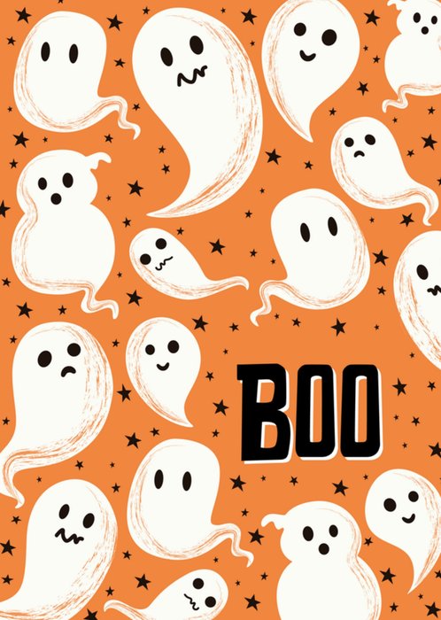 Boo! Wie jaag jij de stuipen op het lijf? Happy Halloween met dit spannende kaartje met allemaal spookjes.