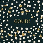Na 50 jaar huwelijk is er sprake van een gouden jubileum. Op deze kaart staat met grote letters goud! in verschillende tinten goud op een zacht gele ondergrond.