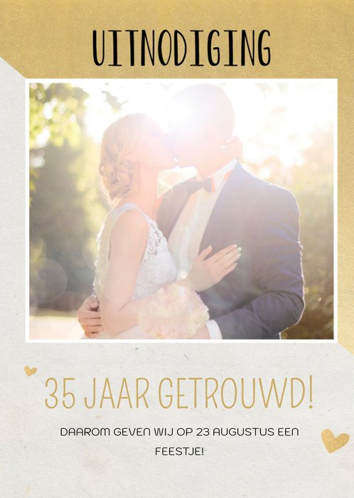 Trendy uitnodiging voor een huwelijks jubileum. Op de voorkant kan een eigen datum en foto worden toegevoegd.