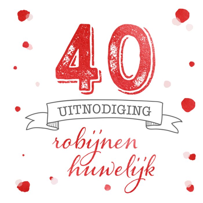 Witte en trendy uitnodiging voor een robijnen huwelijk.