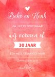 Rode en trendy uitnodiging voor een huwelijks jubileum. Op de voorkant kan een eigen datum en namen toevoegen.