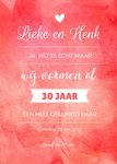 Rode en trendy uitnodiging voor een huwelijks jubileum. Op de voorkant kan een eigen datum en namen toevoegen.
