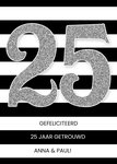 Op deze leuke jubileumkaart staat het getal 25 en de tekst: Gefeliciteerd 25 jaar getrouwd [namen]