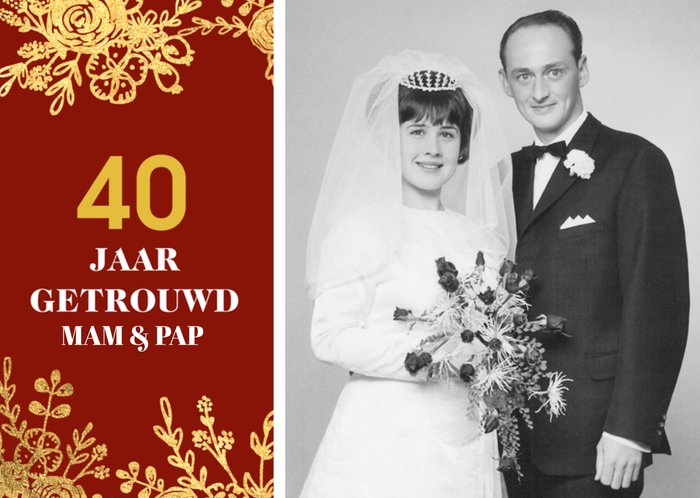Leuke fotokaart met de tekst: 40 jaar getrouwd mam & pap.