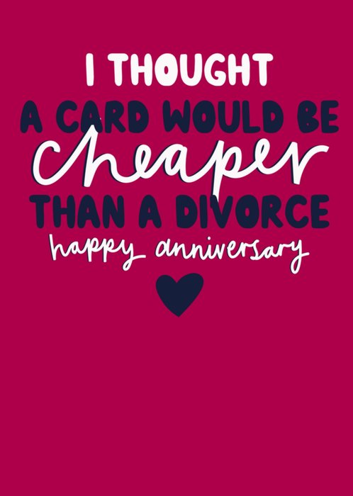 Verras de liefde van je leven met deze grappige jubileumkaart. Op de kaart staat: I thought a card would be cheaper than a divorce happy anniversary.