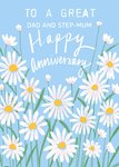 Vrolijke jubileumkaart met madeliefjes en de tekst: To a great dad and step-mum happy anniversary.