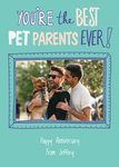 Grappige wenskaart met foto en naam. Op de kaart staat: You're the best pet parents ever! Happy anniversary from [naam]
