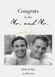 Wie wil jij verrassen met een leuke huwelijkskaart van Greetz? Op deze minimalistische kaart staat: Congrats to the mr & mr. Ook kun je een foto, een naam en datum toevoegen.