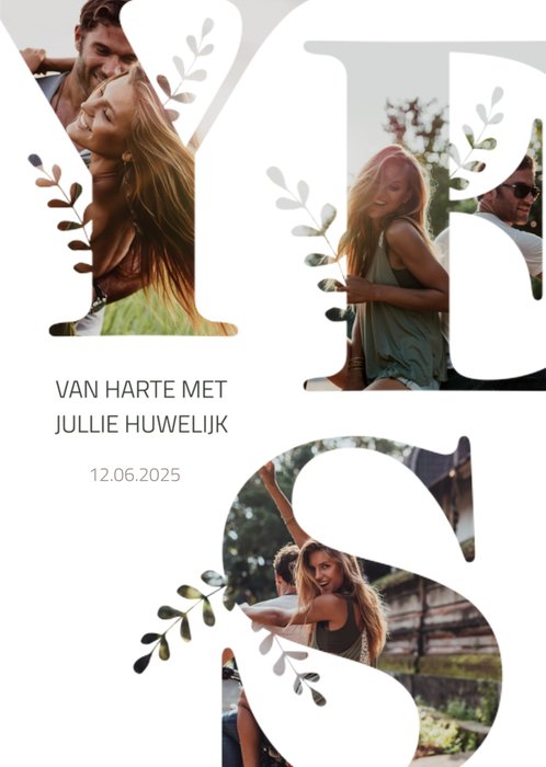 Verras het kersverse stel met deze mooie huwelijkskaart met aanpasbare naam.