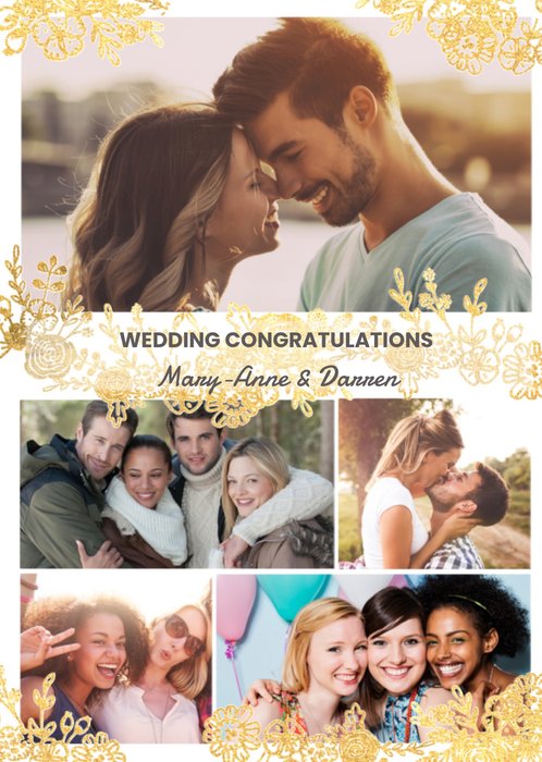 Fotokaart met aanpasbare naam en de tekst: Wedding congratulations